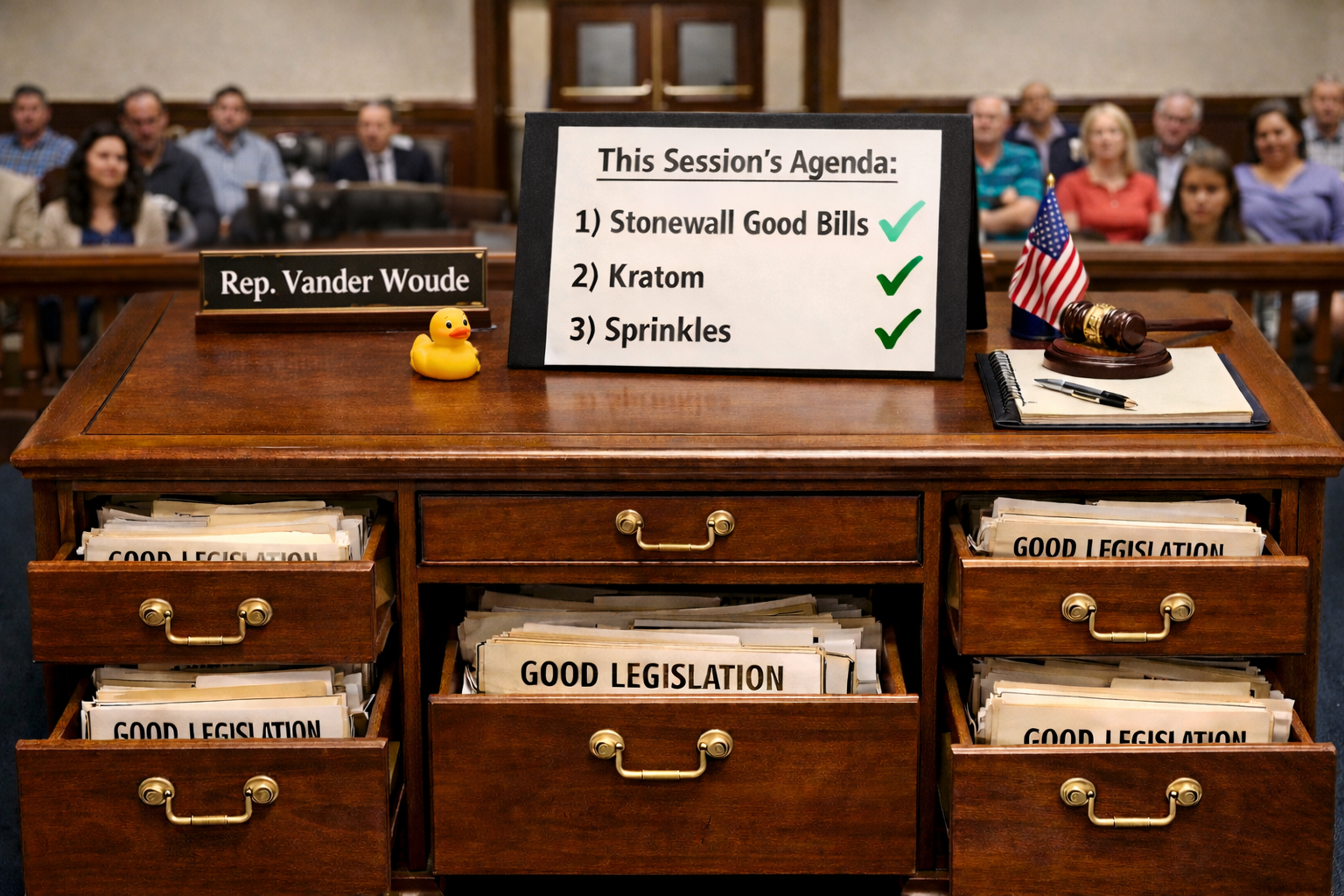 Instead of allowing the most conservative bills — aimed at restraining the Department, cutting waste, or restoring parental rights — to see the light of day, Chairman Vander Woude killed them through unfair committee hearings or left them to die in his drawer. Interestingly, only legislation granting more authority to the state or retaining the status quo were allowed full hearings, often with lengthy debate. It was a sad masterclass in legislative gatekeeping, all performed with the polite smile of a man who knew his time was almost up.